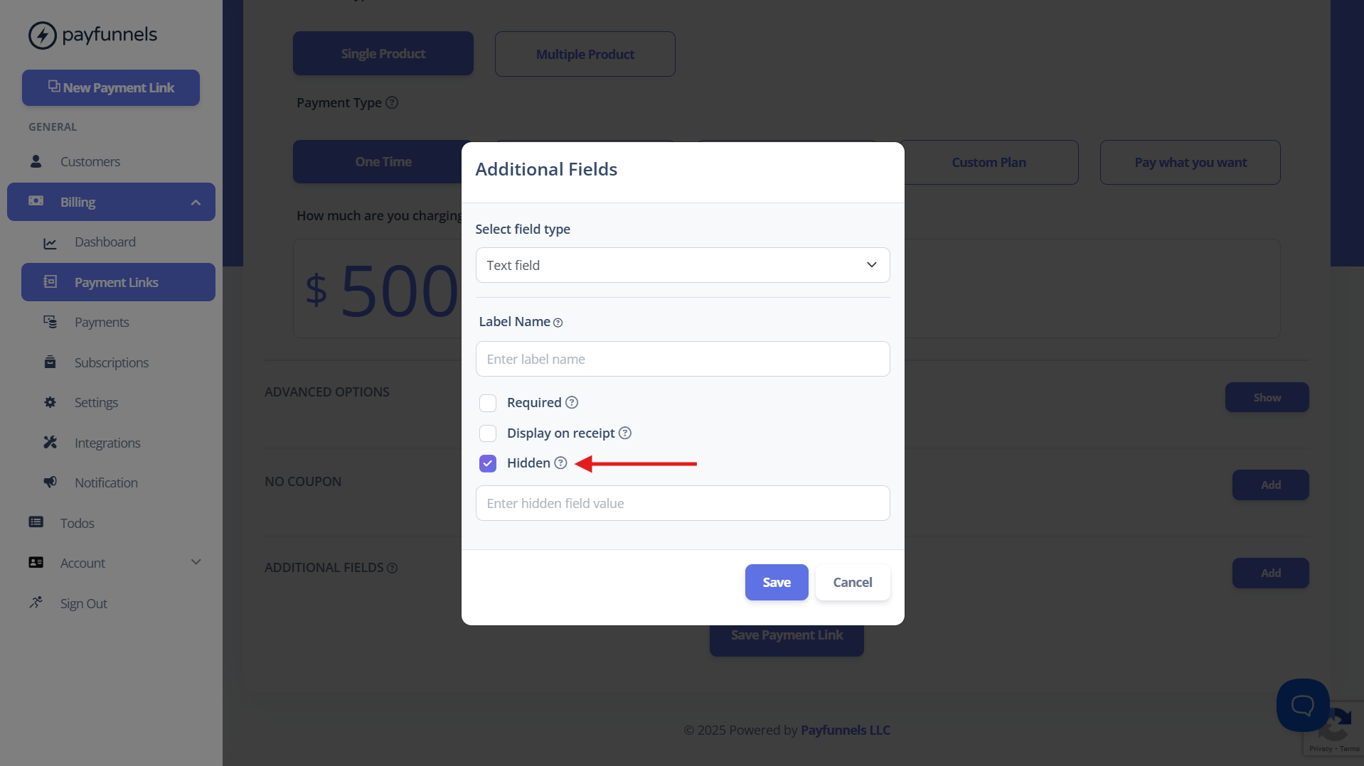 How to add "Additional Fields/Custom Fields" to the payment link?