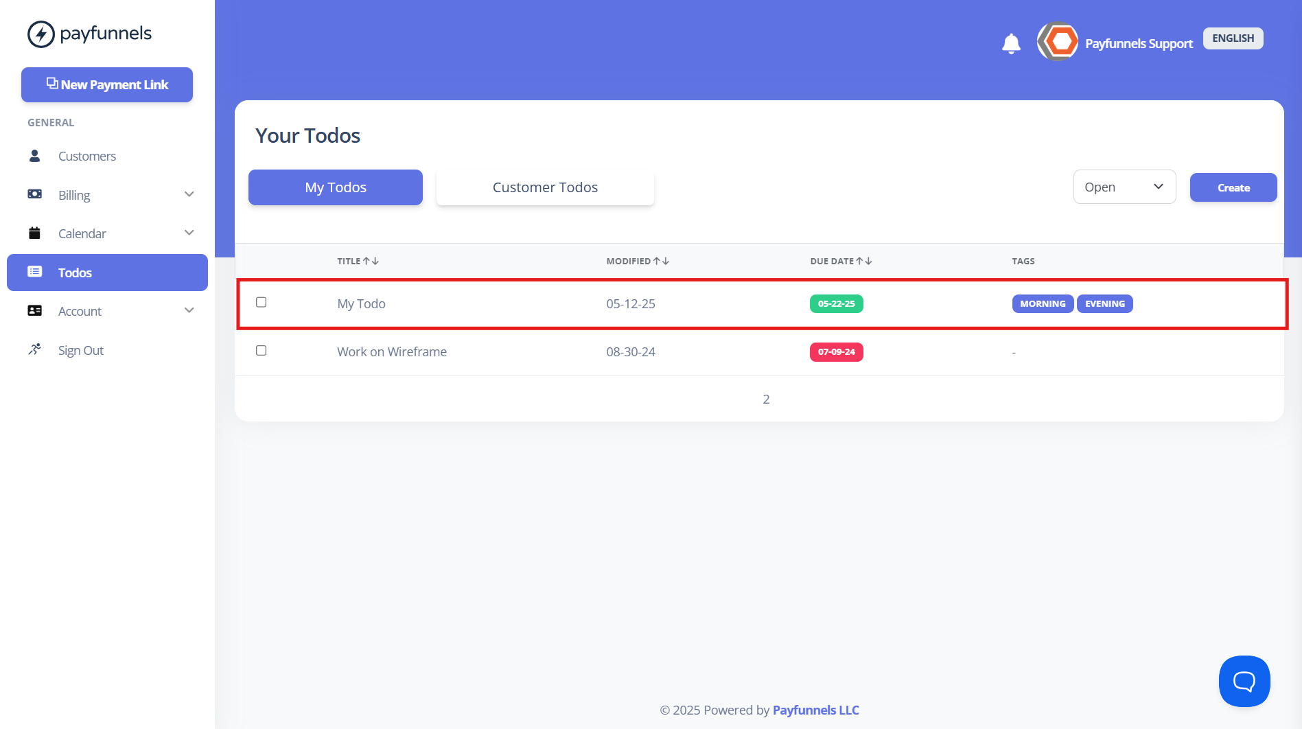 You can now create a To-do list in your Payfunnels account under the ‘Todos’ section.