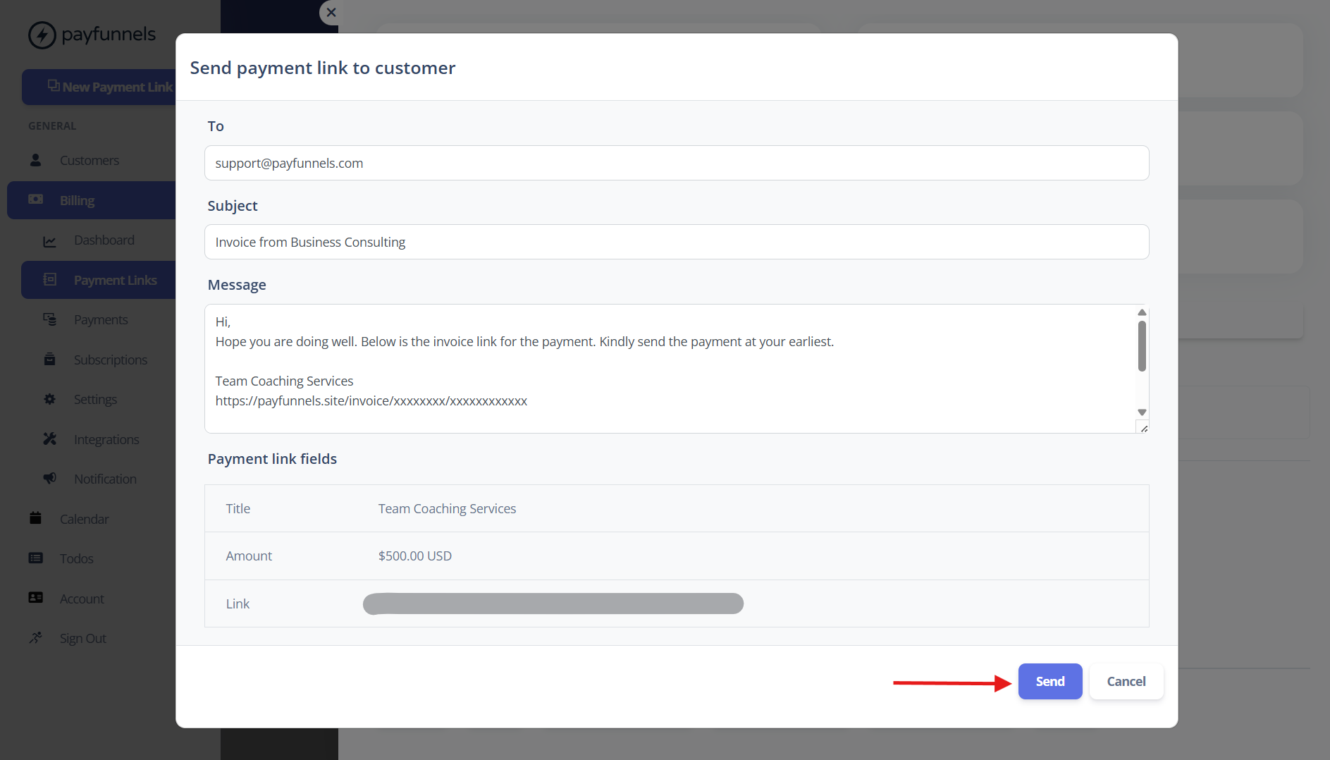 How do I Payment Links to Customers via Email from Payfunnels?