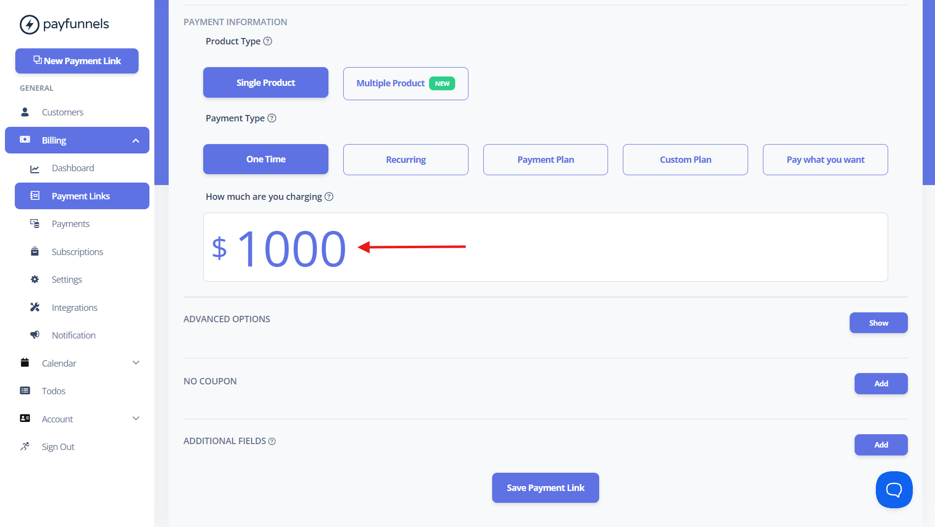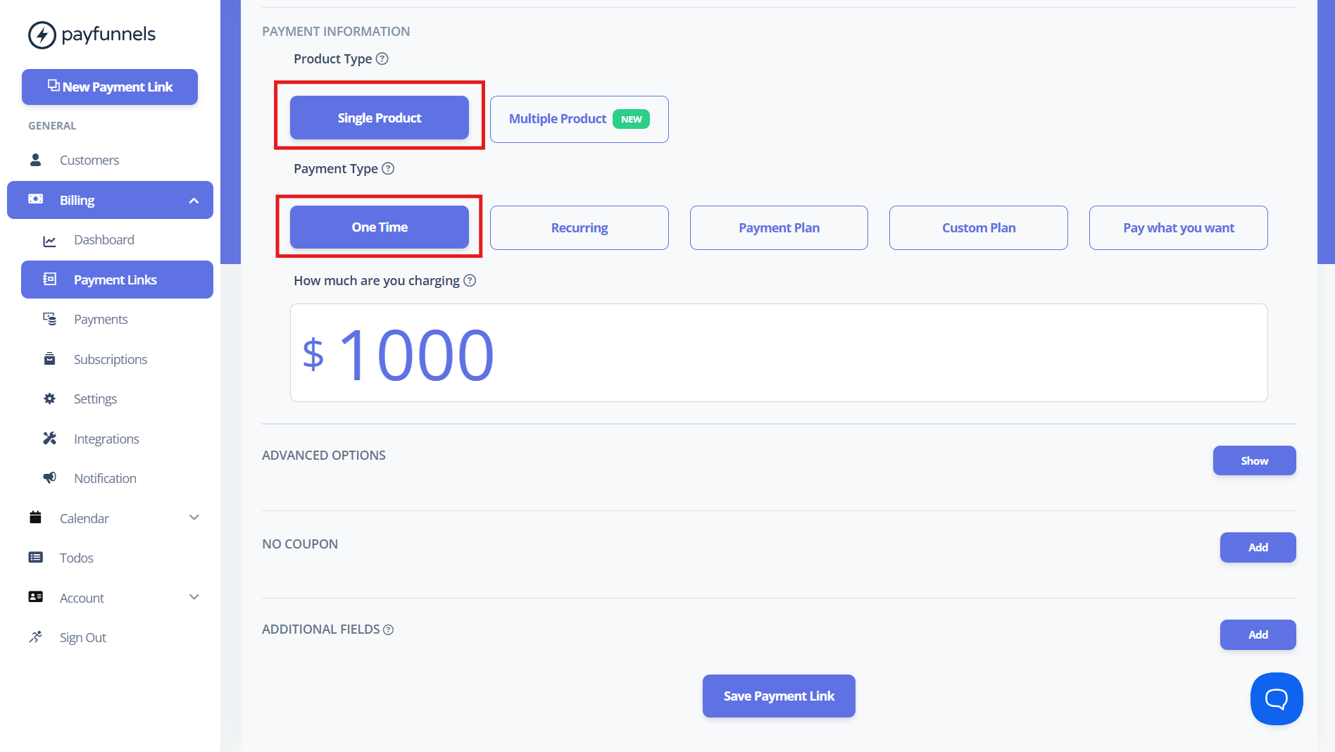 Below is the video and steps to create one-time payment link in Payfunnels: