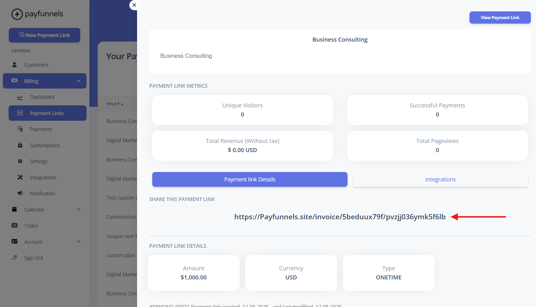 - You can see that the payment link has been generated. You can share this link with your customers via chat, email, or social media.