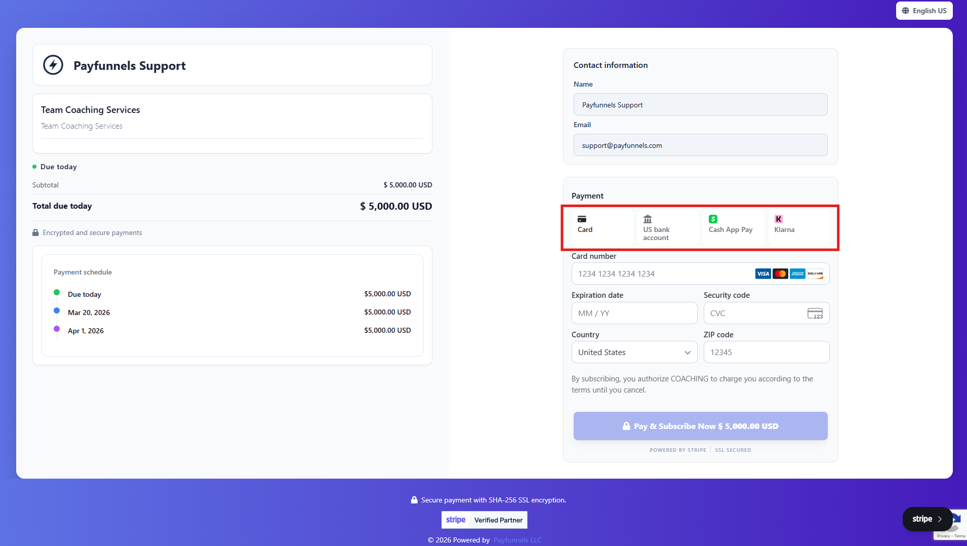 Now, you can offer multiple payment options to your customers, including 'buy now, pay later' options like Affirm and Klarna, bank transfers like ACH (only for the US) and SEPA (For customers in Europe), digital wallets like Apple Pay and Google Pay.