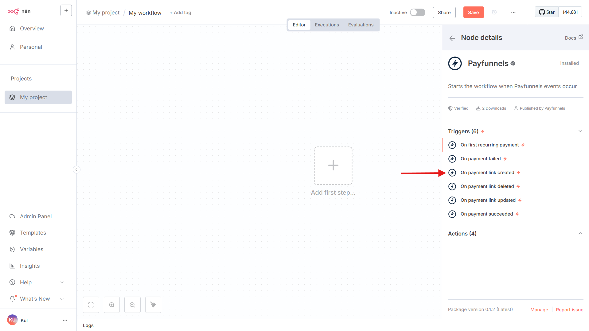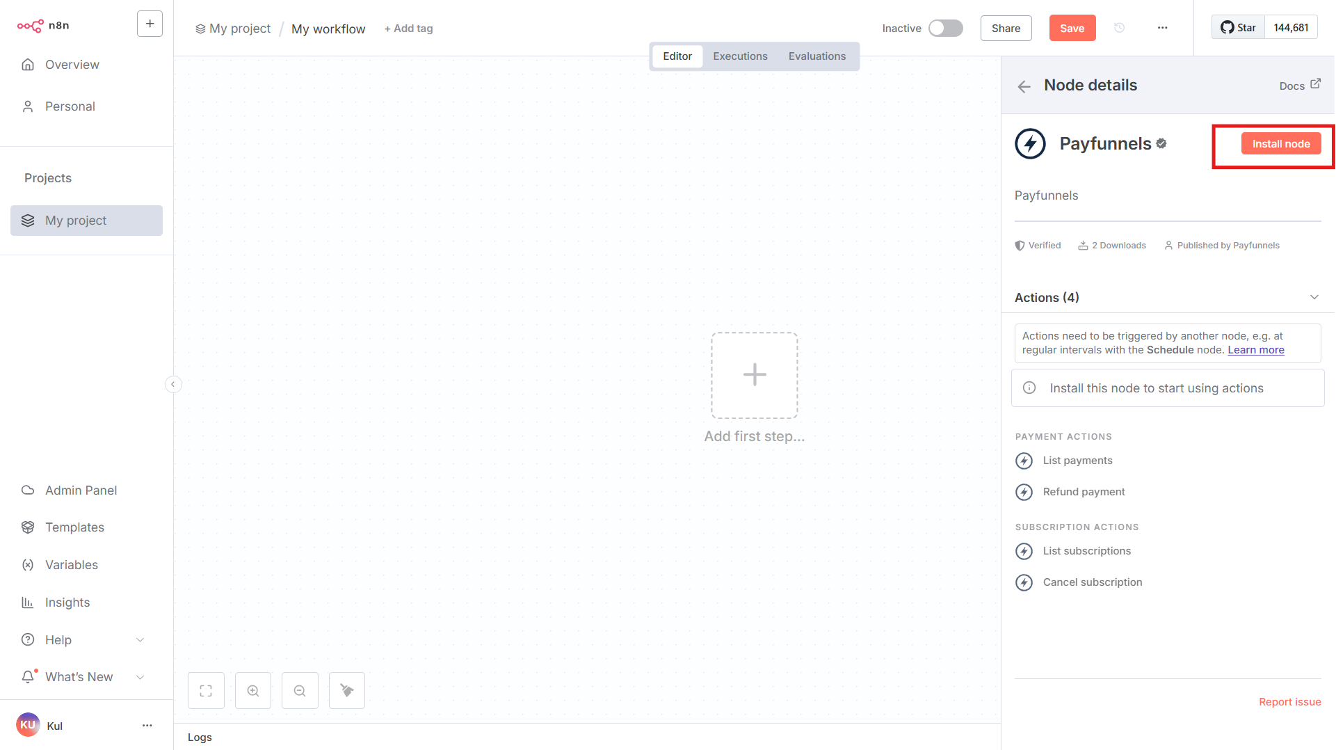 Below are the steps on how to Integrate Payfunnels with n8n: