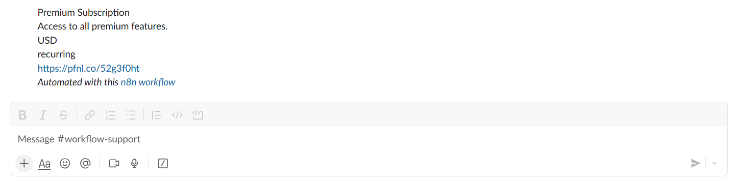 - Let’s choose Slack for this example. (Once a payment link is created in Payfunnels, it will automatically send a message in the selected Slack channel with the chosen information.)