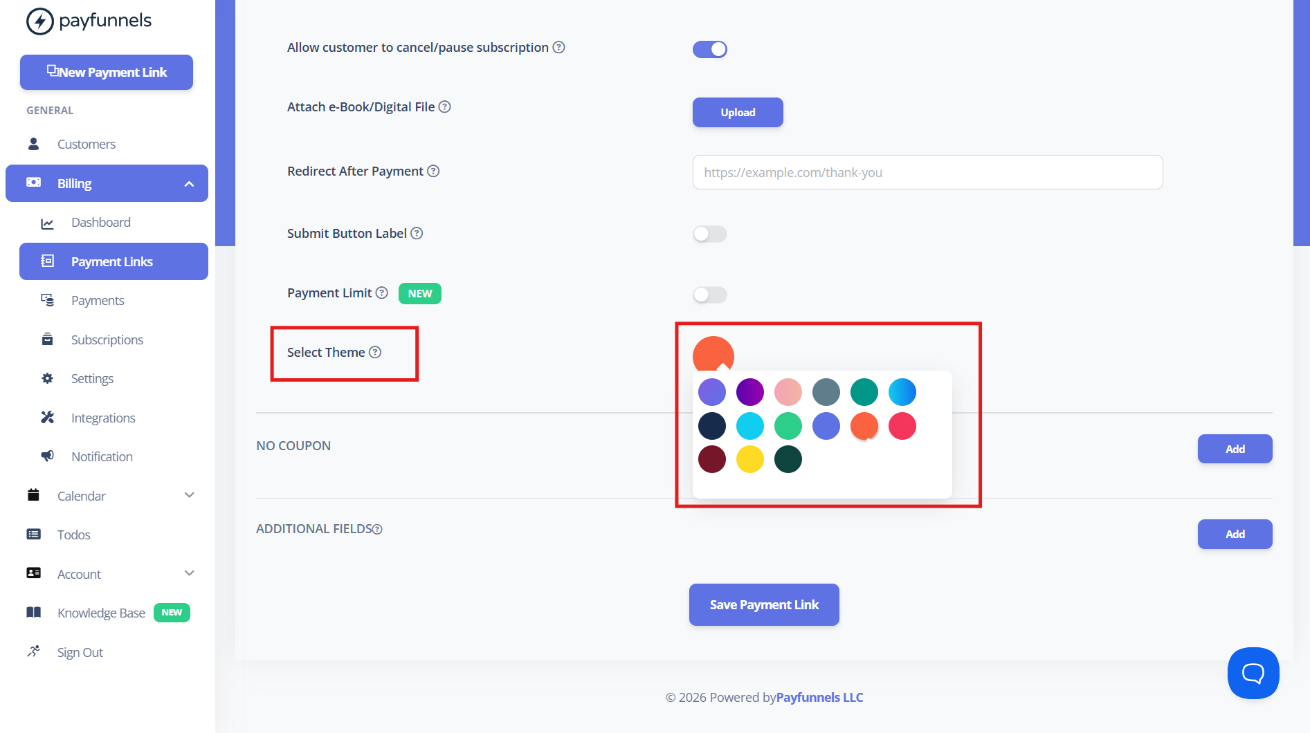 - You can also set the default theme for new payment links in 'Settings' under the 'Billing' tab.